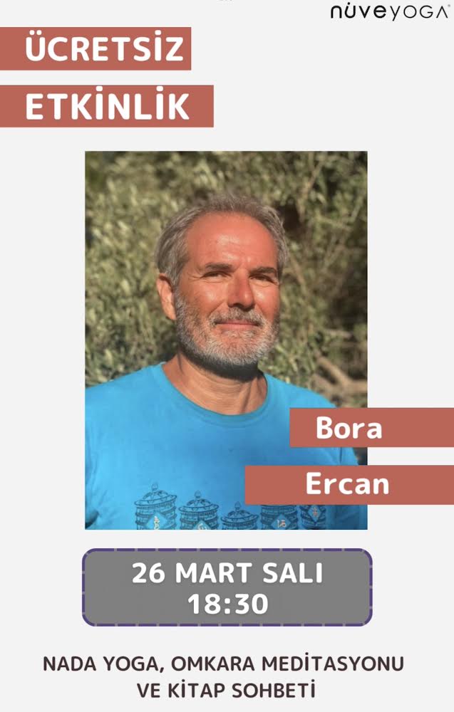 Bora Ercan ile herkese açık ve ücretsiz “Baharı Karşılama: Nada Yoga ve Omkara Meditasyonu ve Kitap Sohbeti” 26 Mart Salı 18:30 – 21:00 saatleri arasında Nuve Yoga’da!