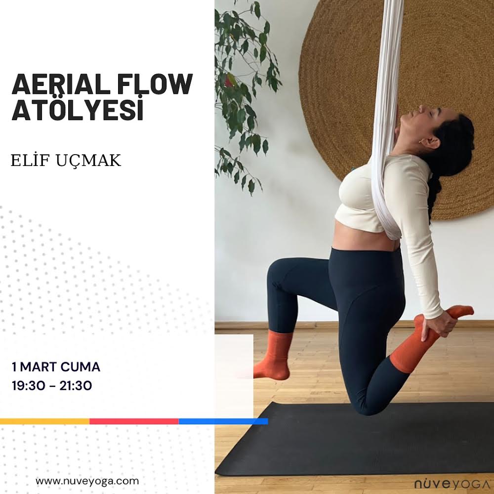 Elif Uçmak ile Aerial Flow Atölyesi 1 Mart Cuma 19:30 – 21:30 saatleri arasında Nuve Yoga’da! Bu atölye çalışmasında hamak desteğiyle ters duruşlar, akrobasi temelli denge pozları, serbest düşüşler deneyimlenecek ve tüm bu seriler arası güvenli geçişler çalışılacaktır. Atölye boyunca hamak desteği ve hamakla olan güven ilişkimiz derinleşirken, kendi bedenimizin sınırlarını omurgada hiçbir baskı hissetmeden ve eğlenceli bir yolla keşfetmeye odaklanacağız. Atölyemiz bir süredir aerial yoga pratiği olan öğrencilere ve bu serileri kendi derslerine güvenle uyarlamak isteyen yeni aerial yoga uzmanlarına uygundur.