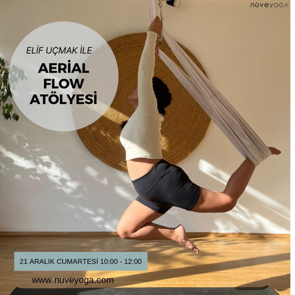 Elif Uçmak ile Aerial Flow Atölyesi 21 Aralık Cumartesi 10:00 – 12:00 saatleri arasında Nuve Yoga’da!